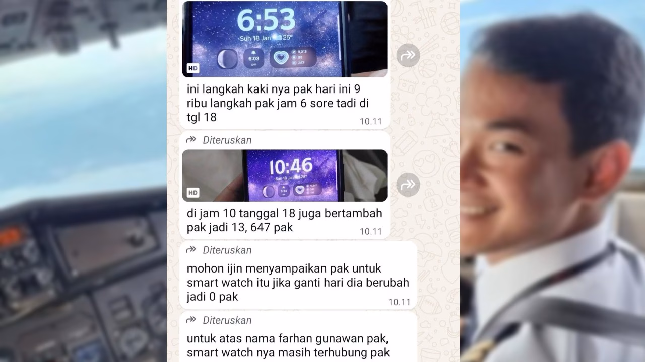 Data aktivitas fisik dari smartwatch Galaxy milik Kopilot Farhan Gunawan terdeteksi masih diperbarui pada ponsel pintarnya yang kini diamankan pihak keluarga. Sinkronisasi data langkah kaki tersebut terpantau terus bertambah meski perangkat ponsel berada di tangan keluarga pasca-kecelakaan pesawat ATR 42-500 di Gunung Bulusaraung, Kabupaten Pangkep, Sulawesi Selatan.