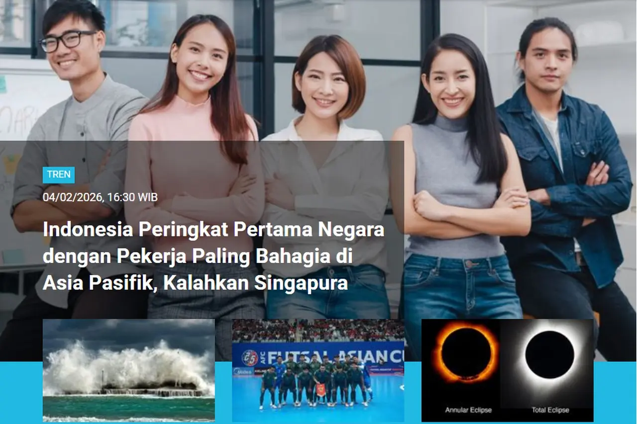 Pada Kamis, 05 Februari 2026, sejumlah isu populer mendominasi perhatian publik, mulai dari kabar gembira tentang kebahagiaan pekerja di Indonesia hingga peringatan cuaca ekstrem dari Badan Meteorologi, Klimatologi, dan Geofisika (BMKG). Pergerakan harga emas yang fluktuatif serta informasi libur panjang Imlek juga menjadi sorotan utama.