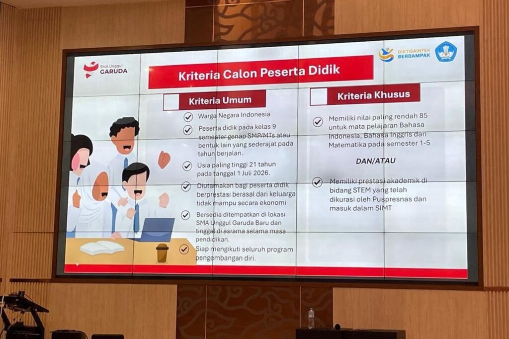 Informasi lengkap mengenai program beasiswa dan proses PPDB SMA Unggul Garuda Baru disampaikan melalui pernyataan resmi Direktur Strategi dan Sistem Pembelajaran Transformatif Dirjen Saintek Kemdiktisaintek, Ardi Findyartini, pada Rabu, 18 Februari 2026.
