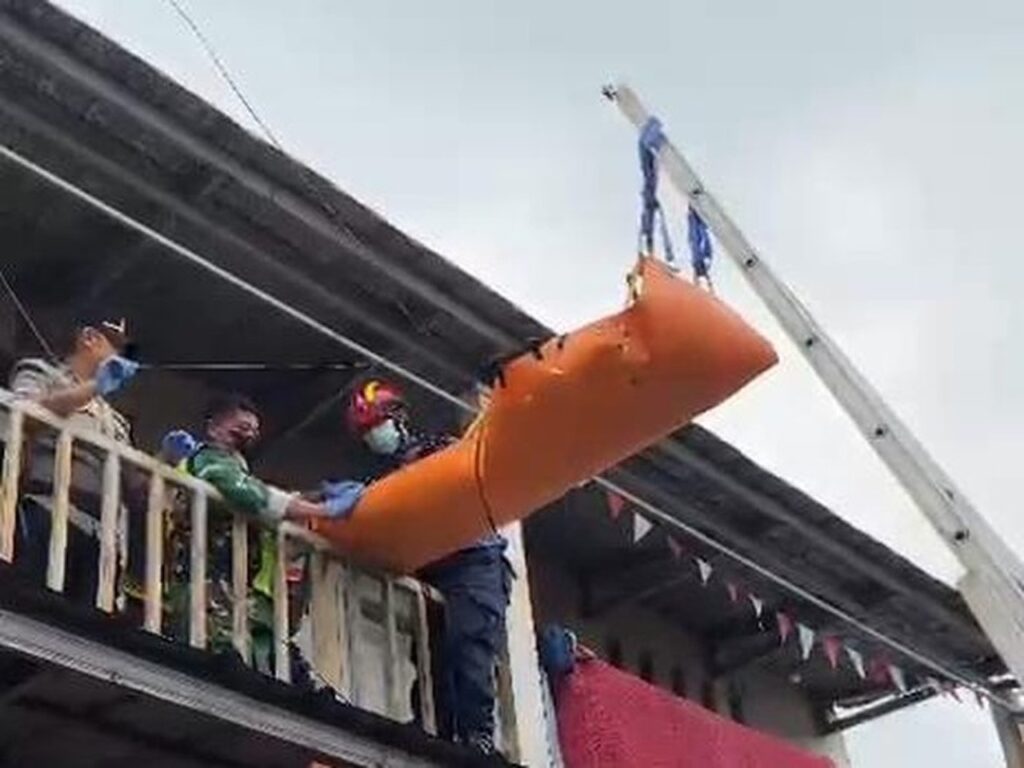 Proses pemindahan jasad menjadi sorotan warga karena posisi kamar berada di lantai dua dengan akses tangga yang sangat sempit. Kondisi jenazah yang sudah membengkak membuat evakuasi manual tidak memungkinkan untuk dilakukan.