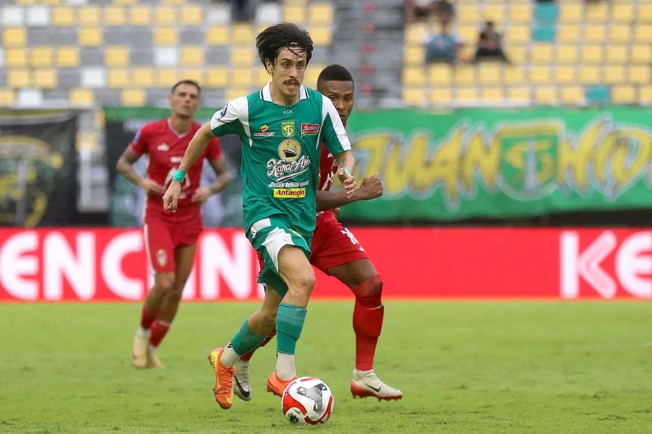 Persebaya akhirnya sukses mencetak gol pembuka pada menit ke-23. Gelandang Francisco Rivera menyambar umpan matang Arief Catur Pamungkas. Rivera berdiri bebas tak terkawal, sehingga dengan mudah meneruskan bola ke gawang Dewa United sekaligus membawa Persebaya unggul 1-0.