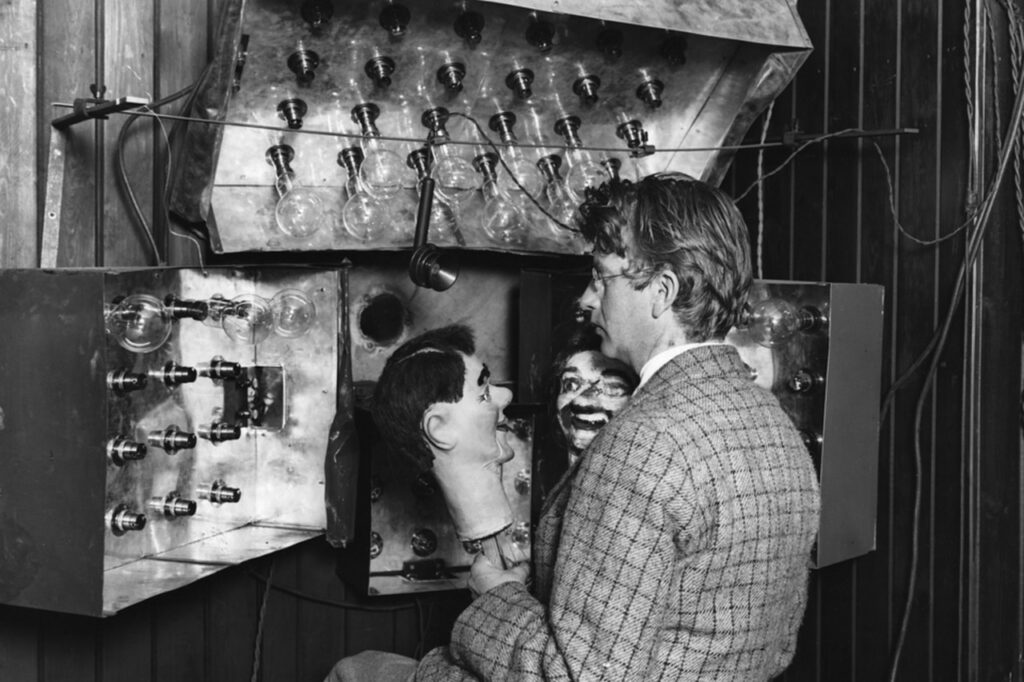 Dalam proses uji coba, Baird menggunakan boneka ventriloquis bernama Stooky Bill sebagai objek. Wajah boneka tersebut dicat khusus agar memiliki kontras tinggi sehingga kamera awal buatannya dapat menangkap bayangan dengan lebih jelas. Pada 2 Oktober 1925, wajah boneka tersebut berhasil ditampilkan di layar dengan kejernihan yang signifikan.