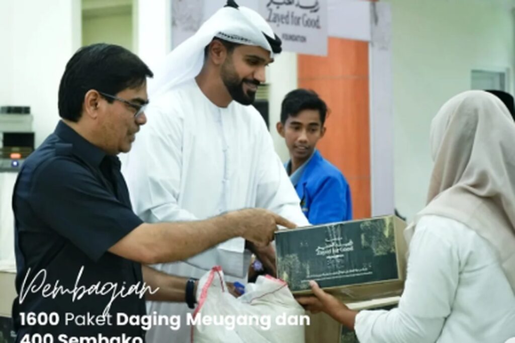 Bantuan yang disalurkan terdiri dari 1.600 paket daging meugang dan 400 paket sembako. Penyerahan simbolis dilakukan oleh Rektor UIN Ar-Raniry Prof Dr Mujiburrahman MAg bersama perwakilan Mohamed Bin Zayed University for Humanities, Mohamed Alnaqbi, di Auditorium Prof Ali Hasjmy.