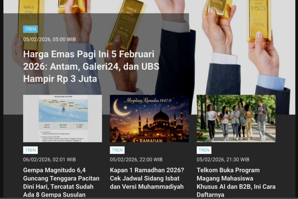 Kanal Tren menyajikan rangkuman berita populer sepanjang Kamis (5/2/2026) hingga Jumat (6/2/2026) pagi. Fokus utama publik tertuju pada lonjakan harga emas yang mendekati angka psikologis Rp 3 juta per gram serta temuan ratusan penyebutan nama Indonesia dalam dokumen Jeffrey Epstein.