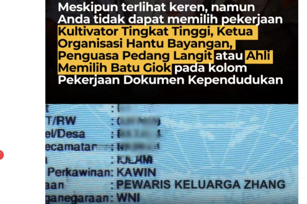 Dalam unggahan tersebut, Dukcapil Gunungkidul juga menyertakan kalimat humoris yang berbunyi, “Meskipun terdengar keren, Anda tidak dapat memilih pekerjaan seperti Kultivator Tingkat Tinggi, Ketua Organisasi Hantu Bayangan, Penguasa Pedang Langit, atau Ahli Memilih Batu Giok pada kolom dokumen kependudukan.” Pernyataan ini semakin memicu rasa penasaran dan diskusi di kalangan masyarakat.